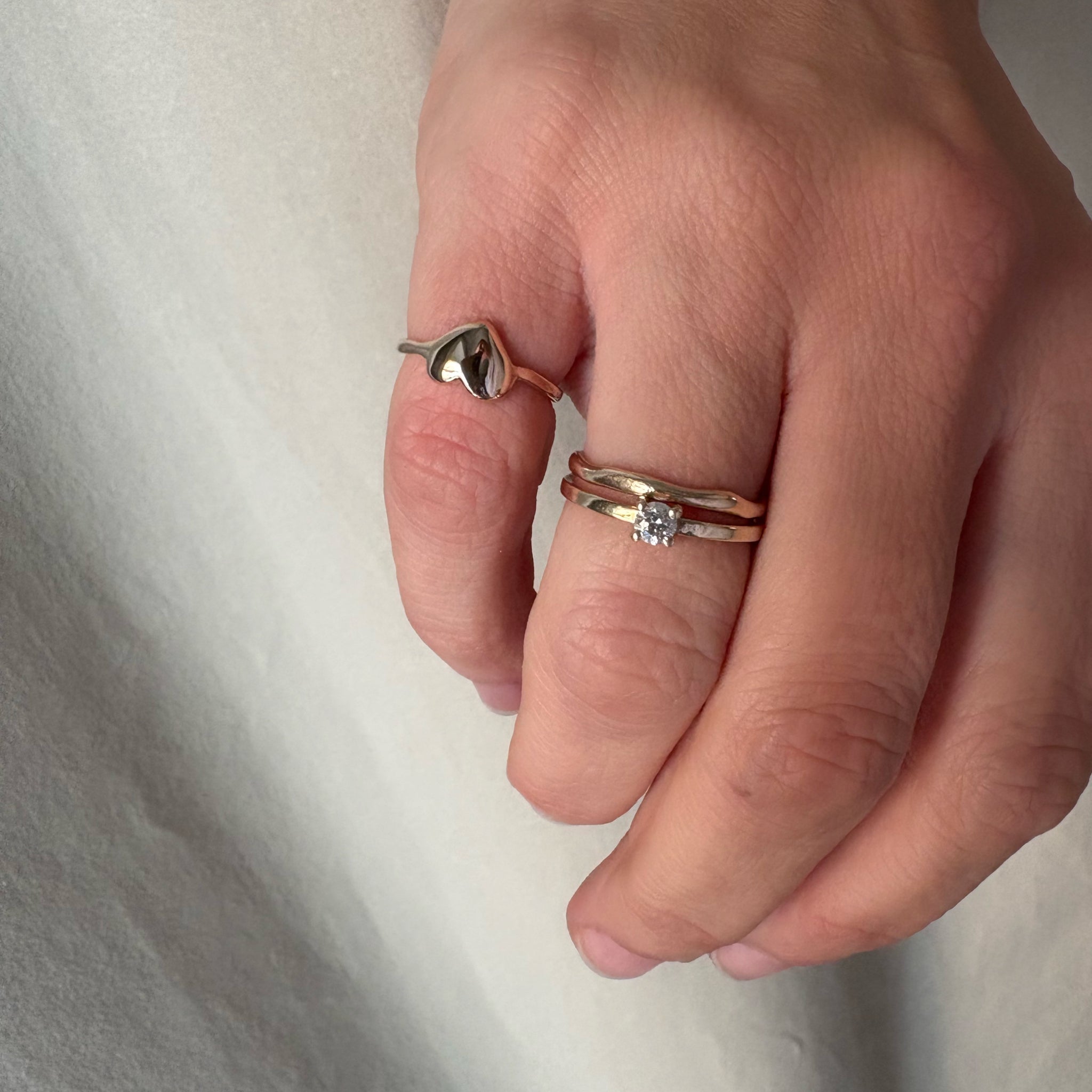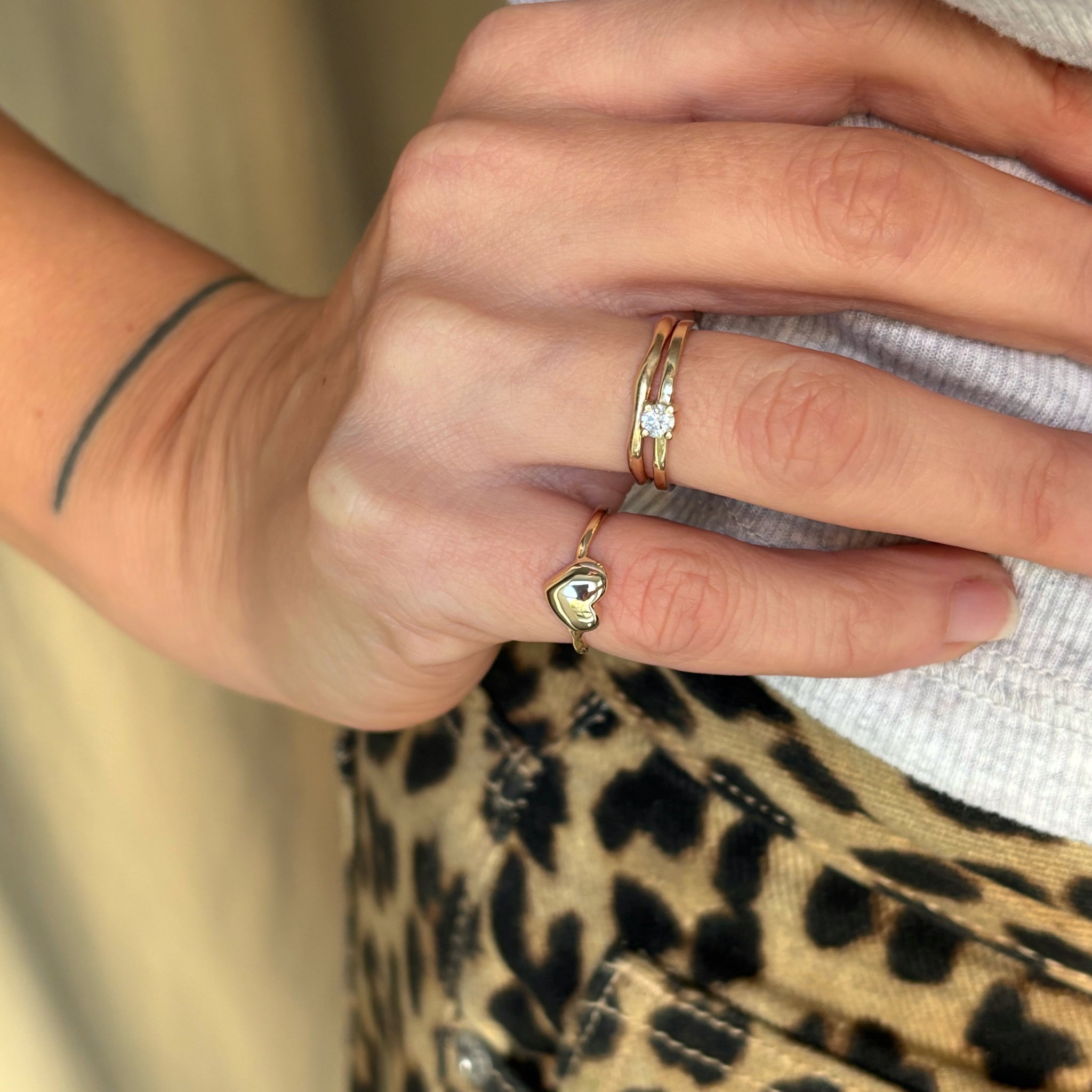 Håndstøbt hjertering til lillefingeren (eller en anden lille finger) i massiv guld. Hjertet symboliserer mange ting, og hver ting er unik, præcis som hjertet. Der findes nemlig kun dette ene.