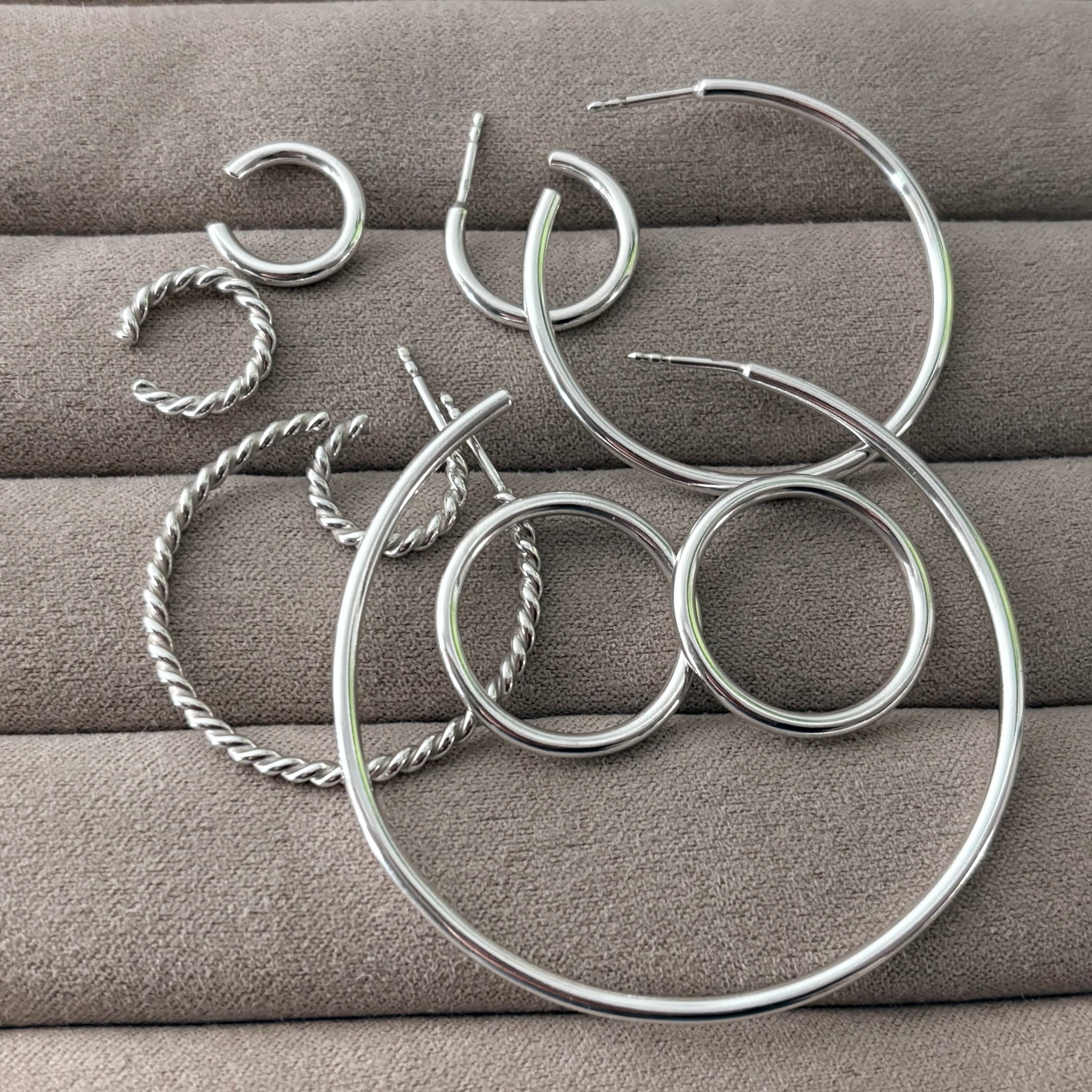 Mål: lavet i 2 mm massiv sølvtråd - se størrelse på hver enkelt hoop i menuen.